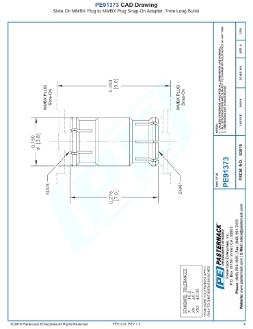 PE91373 CAD Drawing Slide-On MMBX Plug to MMBX Plug Snap-On Adapter, 7mm Long Bullet PE91373 REV 1.0 4