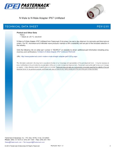 inventory and certifications: N Male to N Male Adapter IP67 UnMated PE91235