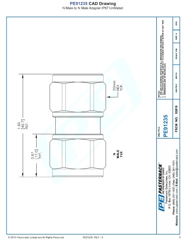 PE91235 CAD Drawing N Male to N Male Adapter IP67 UnMated © 2014 Pasternack Enterprises All Rights Reserved PE91235 REV 1.0 3