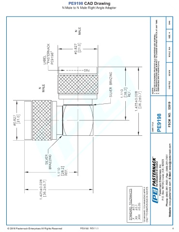 PE9198 CAD Drawing N Male to N Male Right Angle Adapter PE9198 REV 1.1 4