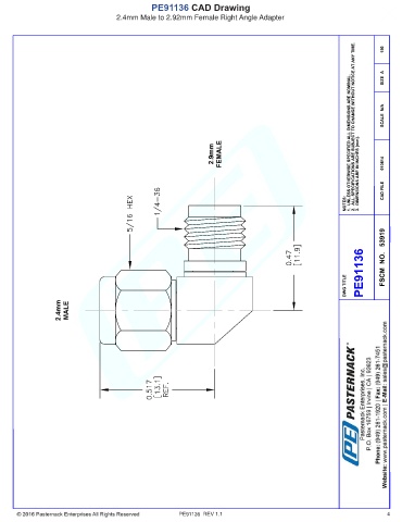 PE91136 CAD Drawing 2.4mm Male to 2.92mm Female Right Angle Adapter PE91136 REV 1.1 4