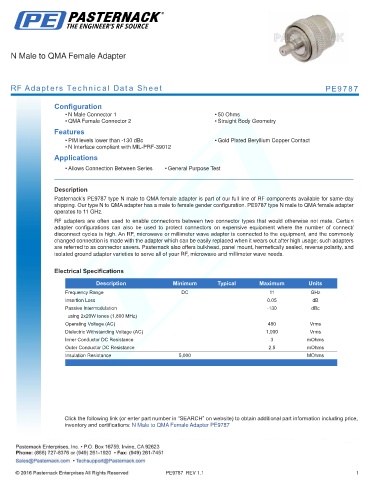 RF Adapters Technical Data Sheet PE9787
