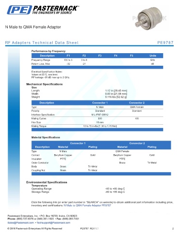 inventory and certifications: N Male to QMA Female Adapter PE9787