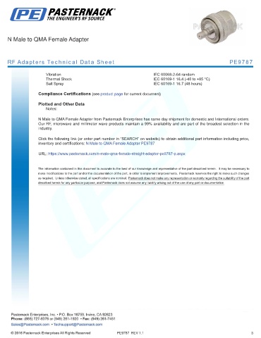 inventory and certifications: N Male to QMA Female Adapter PE9787