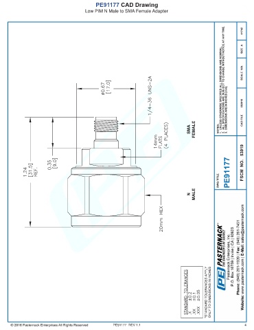 PE91177 CAD Drawing Low PIM N Male to SMA Female Adapter PE91177 REV 1.1 4