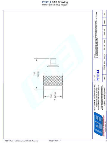 PE9314 CAD Drawing N Male to SMB Plug Adapter PE9314 REV 1.1 3