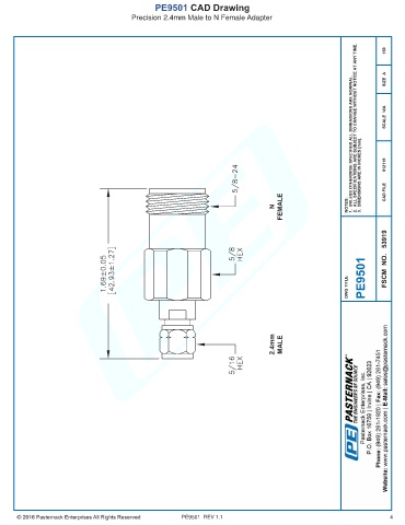 PE9501 CAD Drawing Precision 2.4mm Male to N Female Adapter PE9501 REV 1.1 4