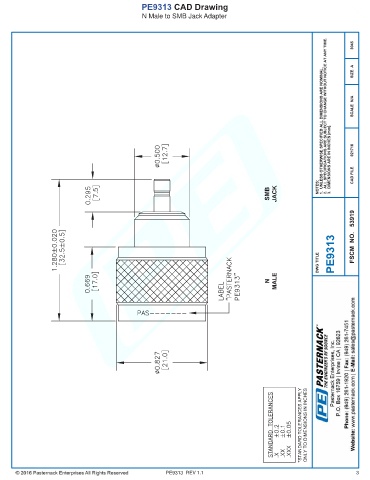 PE9313 CAD Drawing N Male to SMB Jack Adapter PE9313 REV 1.1 3
