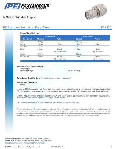 inventory and certifications: N Male to TNC Male Adapter PE9130