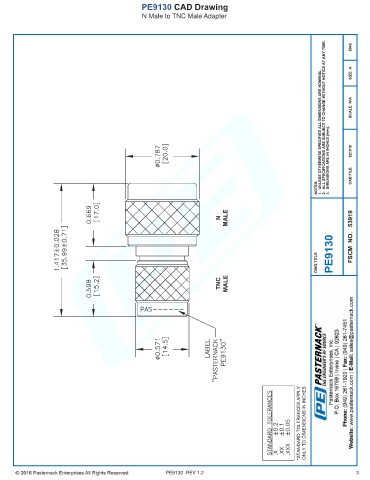 PE9130 CAD Drawing N Male to TNC Male Adapter PE9130 REV 1.2 3