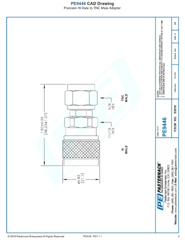 PE9446 CAD Drawing Precision N Male to TNC Male Adapter PE9446 REV 1.1 4