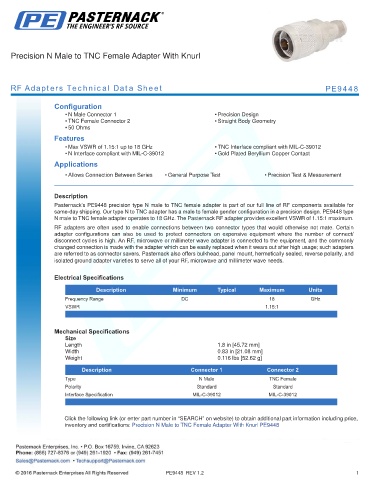 RF Adapters Technical Data Sheet PE9448