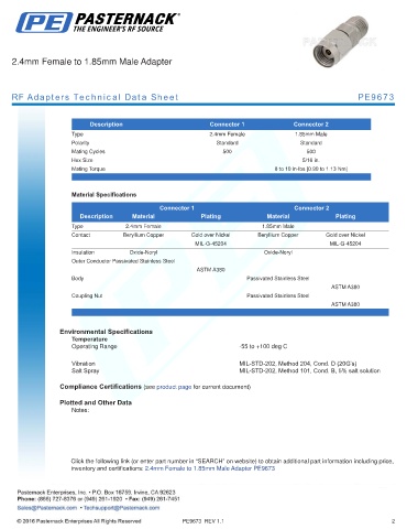 inventory and certifications: 2.4mm Female to 1.85mm Male Adapter PE9673