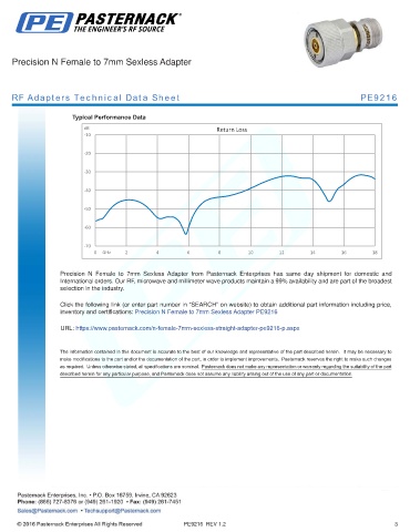 inventory and certifications: Precision N Female to 7mm Sexless Adapter PE9216