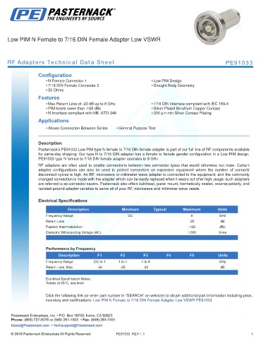RF Adapters Technical Data Sheet PE91033