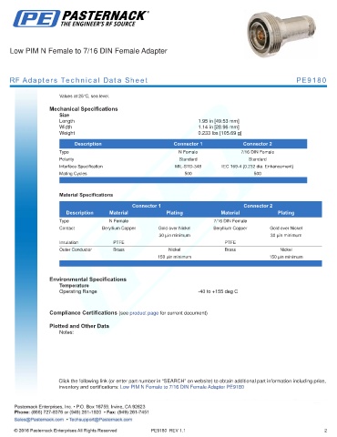 inventory and certifications: Low PIM N Female to 7/16 DIN Female Adapter PE9180