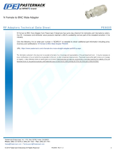 any representation or warranty regarding the suitability of the part described herein for any particular purpose, and Pasternack does not assume any liability arising out of the use of any part or documentation.
