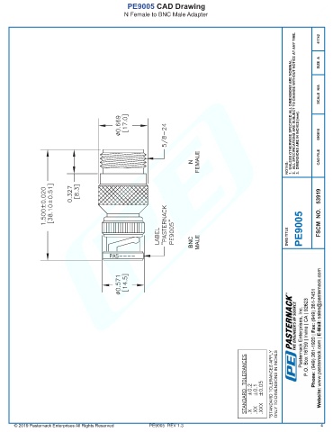 any representation or warranty regarding the suitability of the part described herein for any particular purpose, and Pasternack does not assume any liability arising out of the use of any part or documentation.