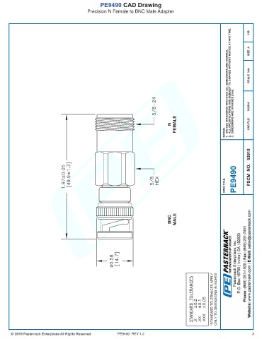PE9490 CAD Drawing Precision N Female to BNC Male Adapter PE9490 REV 1.2 3