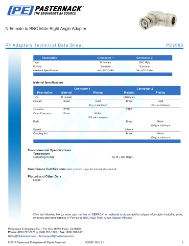 inventory and certifications: N Female to BNC Male Right Angle Adapter PE9566