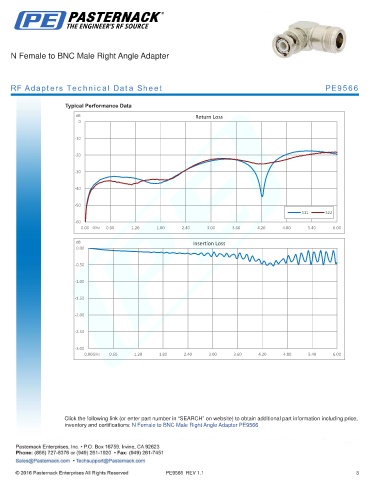 inventory and certifications: N Female to BNC Male Right Angle Adapter PE9566