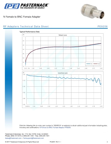 inventory and certifications: N Female to BNC Female Adapter PE9206