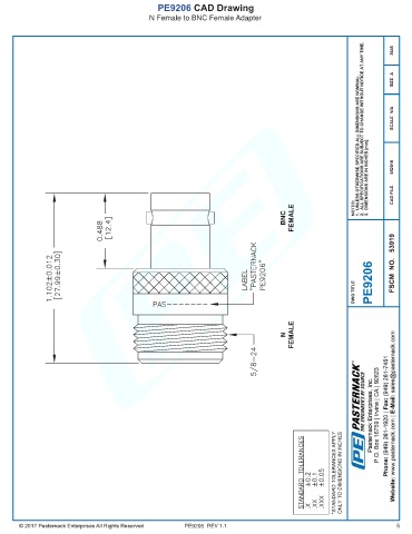 PE9206 CAD Drawing N Female to BNC Female Adapter PE9206 REV 1.1 5