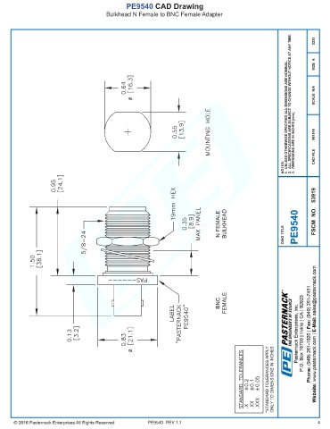 PE9540 CAD Drawing Bulkhead N Female to BNC Female Adapter PE9540 REV 1.1 4