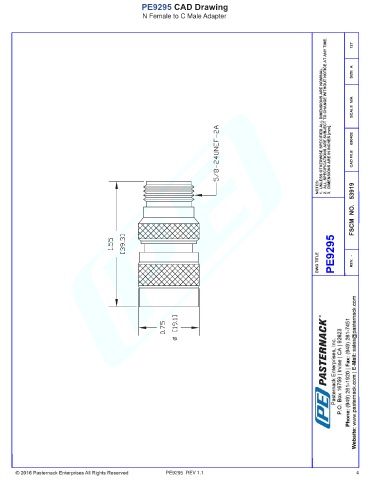 PE9295 CAD Drawing N Female to C Male Adapter PE9295 REV 1.1 4