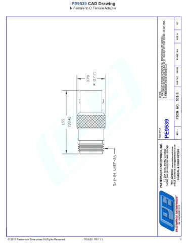 PE9539 CAD Drawing N Female to C Female Adapter PE9539 REV 1.1 3