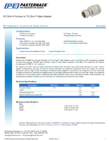 RF Adapters Technical Data Sheet PE9389