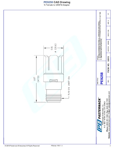 PE9258 CAD Drawing N Female to GR874 Adapter PE9258 REV 1.1 3