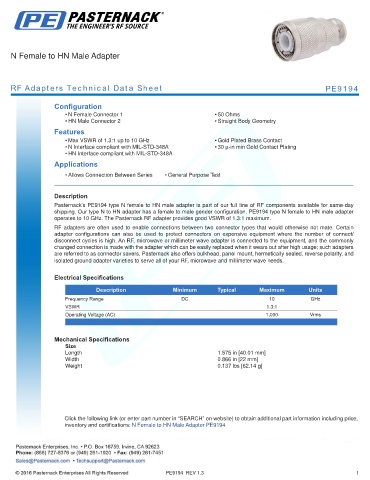 RF Adapters Technical Data Sheet PE9194