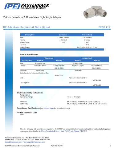 inventory and certifications: 2.4mm Female to 2.92mm Male Right Angle Adapter PE91112