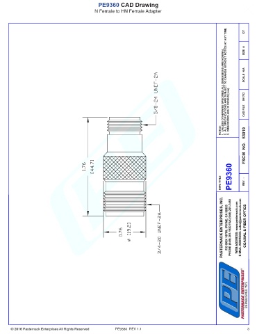 PE9360 CAD Drawing N Female to HN Female Adapter PE9360 REV 1.1 3