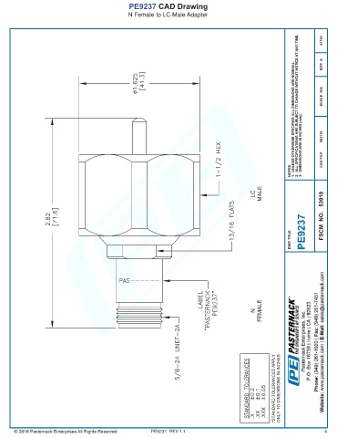 PE9237 CAD Drawing N Female to LC Male Adapter PE9237 REV 1.1 4