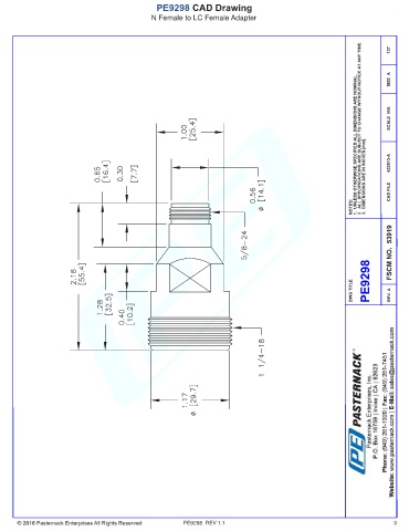 PE9298 CAD Drawing N Female to LC Female Adapter PE9298 REV 1.1 3