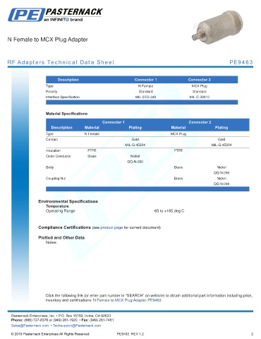 inventory and certifications: N Female to MCX Plug Adapter PE9463