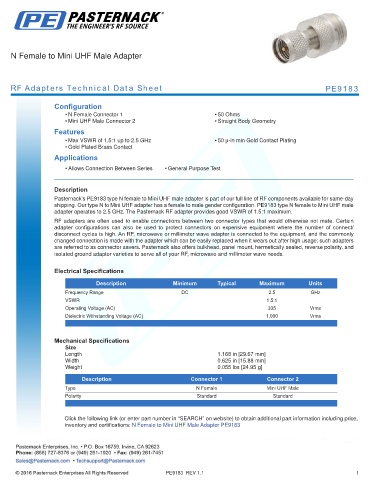 RF Adapters Technical Data Sheet PE9183
