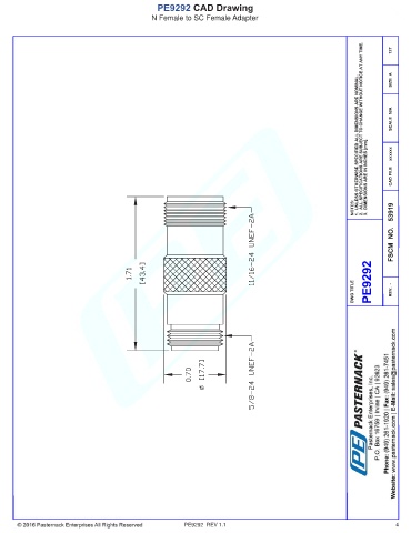 PE9292 CAD Drawing N Female to SC Female Adapter PE9292 REV 1.1 4