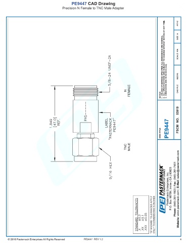 PE9447 CAD Drawing Precision N Female to TNC Male Adapter PE9447 REV 1.2 4