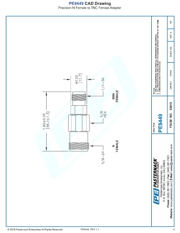 PE9449 CAD Drawing Precision N Female to TNC Female Adapter PE9449 REV 1.1 4