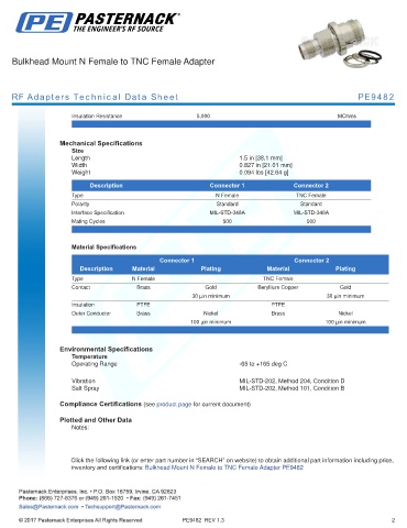 RF Adapters Technical Data Sheet PE9482
