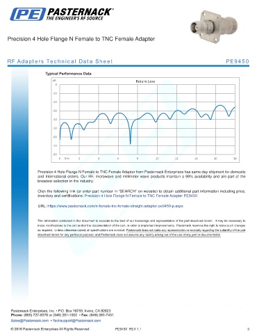 inventory and certifications: Precision 4 Hole Flange N Female to TNC Female Adapter PE9450