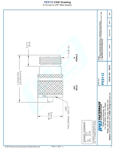PE9112 CAD Drawing N Female to UHF Male Adapter PE9112 REV 1.2 3