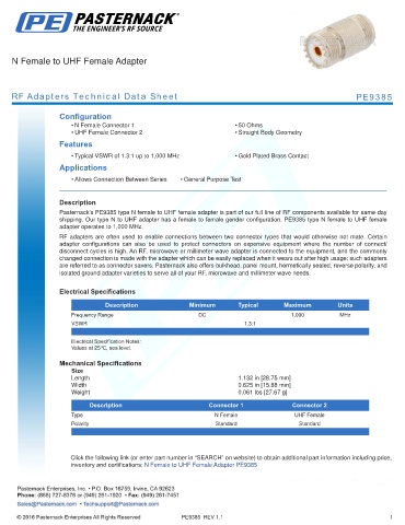 RF Adapters Technical Data Sheet PE9385