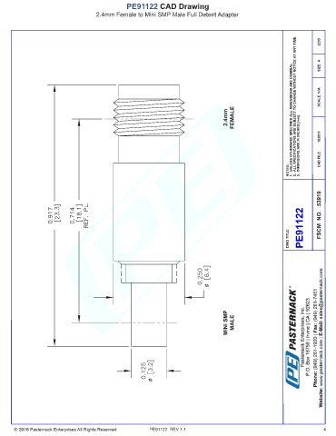 PE91122 CAD Drawing 2.4mm Female to Mini SMP Male Full Detent Adapter PE91122 REV 1.1 4