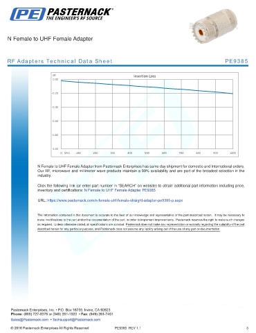inventory and certifications: N Female to UHF Female Adapter PE9385