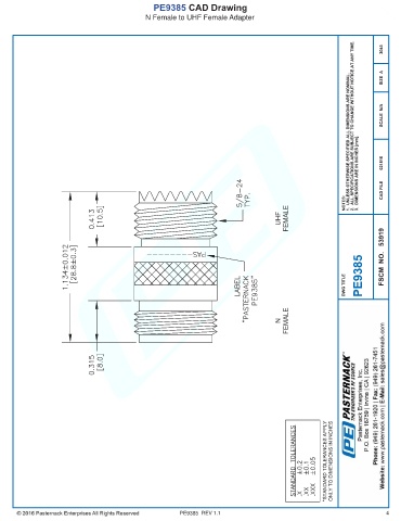 PE9385 CAD Drawing N Female to UHF Female Adapter PE9385 REV 1.1 4