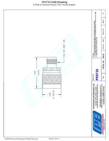 PE9730 CAD Drawing N Male to Reverse Polarity TNC Female Adapter PE9730 REV 1.1 4